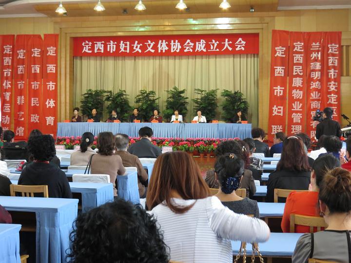 为了全面贯彻实施全民健身计划,增强我市广大妇女身体素质,坚持以人为本的科学发展观,进一步推进我市的经济发展和社会进步。5月15日下午,定西市妇女文体协会成立大会在定西宾馆二楼礼堂举行,原市政协副主席牛芳琴、市体育局、市民政局、市文化局、市文联等部门的负责同志出席会议。市巾帼创业者协会等25家单位和厚玉霞等15名女企业家参加本次成立大会并向本次大会发来贺信和贺电。