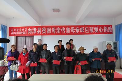 活动中,中国银监会苏州银监分局与吴江农村商业银行联合为漳县三岔镇三岔村妇女捐赠母亲邮包90个,价值4.5万元,随后还将有140个邮包捐赠给岷县的贫困母亲。
