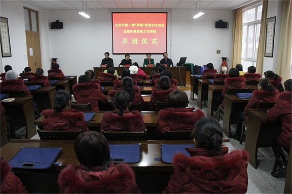 12月26日,由定西市委组织部和市妇联联合举办的全市第一期“两癌”贫困妇女创业技能和康复能力培训班开班。市委常委、市委组织部部长寇明春,市妇联党组书记、主席孙筠出席开班仪式。与会领导亲切看望了学员并与学员合影留念。