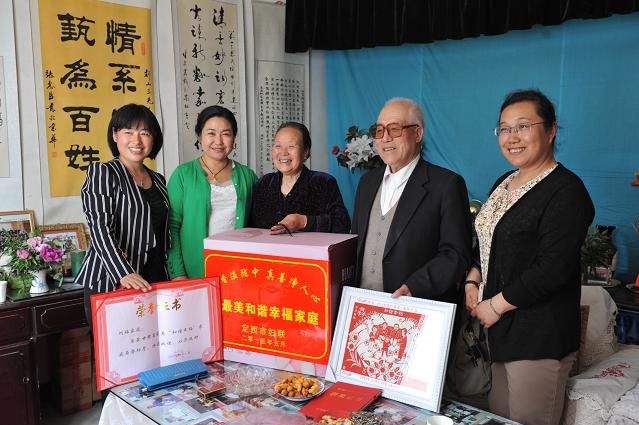 慰问“最美家庭”。5月15日下午,市妇联党组书记、主席孙筠一行先后深入安定区东街社区、北街社区,走访慰问了荣获全省“最美家庭”荣誉称号的刘福家庭和孙晋芳家庭,给他们送去了价值300元的慰问品,并向他们颁发了获奖征书和奖品,对他们孝老爱亲,夫妻和美,创造和谐幸福生活的家庭美德表示崇高的敬意。此次慰问结合市妇联开展的寻找“最美家庭”系列活动之一--“我摄我家,记录最美家庭瞬间”活动,特邀请市摄影家协会有关摄影专家随行,捕捉平凡生活中的美好瞬间。
