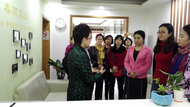 考察组一行先后参观考察了上海互家联家庭服务有限公司,上海市家庭服务业行业协会闸北办事处,上海市闸北区促进妇女就业服务中心、春雨家园家政服务有限公司,上海市闸北区彭浦镇万荣新苑、龙馨居委会妇女之家、龙馨嘉园基石创建活动,并召开了座谈会。