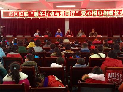 为了缓解全市留守、贫困儿童过冬期间的生活困难,使他们感受来自社会大家庭的温暖,持续、深入地将关心、关爱开展下去,定西市妇联2015年12月份下发了《关于在全市范围内开展“暖冬行动 与爱同行”为留守儿童编织“爱心围巾”志愿活动》的通知,动员巾帼志愿者和爱心人士为留守、贫困儿童编织爱心围巾4000条。活动由市妇联统一购线、统一培训、发动巾帼志愿者分散编织、统一发放。截止目前,各县区妇联陆续开展活动,将爱心围巾发放到每个留守、贫困儿童手中。