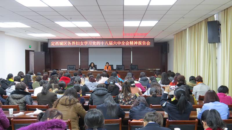 11月30 日下午,市政府统办楼北二楼会议室座无虚席,市妇联举办的定西市各界妇女学习党的十八届六中全会精神报告会在这里举行。
