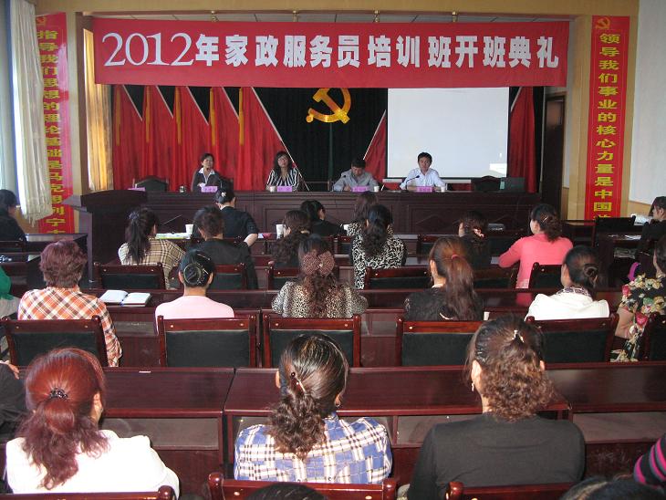 为认真落实省妇联《关于做好2012年劳务品牌培训项目家政服务员培训工作的通知》要求,5月25日,嘉峪关市妇联、市职业教育中心在镜铁区文殊镇举行了2012年家政服务员培训班开班典礼,市妇联、市职教中心负责人及文殊镇学员参加了培训班开班典礼。通过此次培训,将全方位提升我市农村女劳动力的整体素质,使更多的农村妇女掌握家政服务技能,为她们搭建就业平台,寻找就业机会提供更为有力的保障。