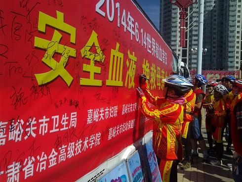 6月14日,嘉峪关市开展了“世界献血者日”主题宣传活动。市妇联、市卫生局、市中心血站等相关单位领导参加活动,百余名无偿献血志愿者参加活动并现场签名。