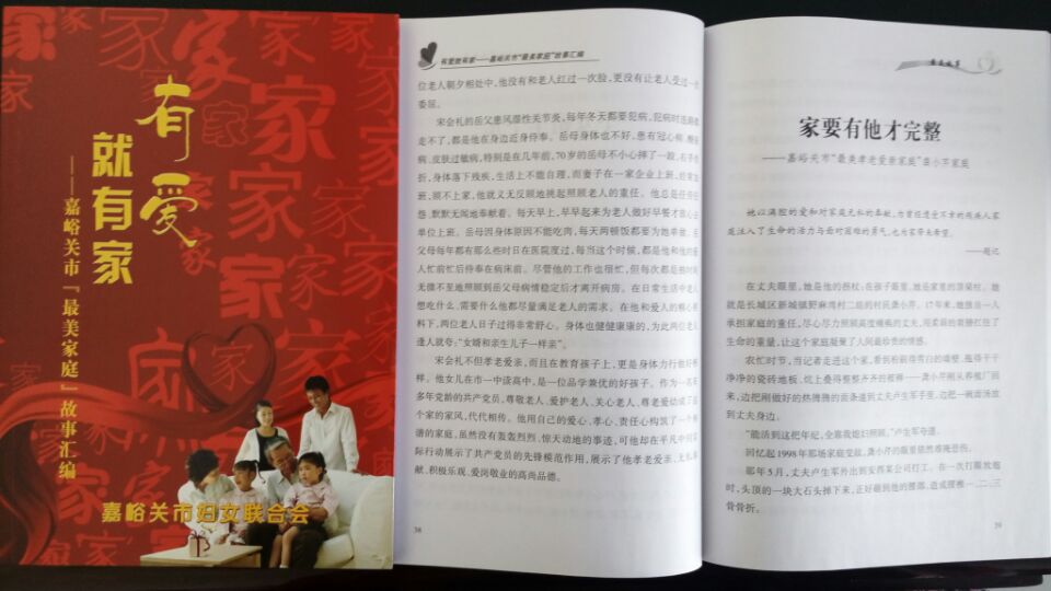 为进一步弘扬家庭美德、传播良好家风、树立“最美”榜样,让更多的家庭一起分享雄关“最美故事”,近日,嘉峪关市妇联精心编印了《有爱,就有家——嘉峪关市“最美家庭”故事汇编》3000余册,并全部下发至全市各区、镇、社区(村)及各妇委会单位,以此激励广大家庭和干部职工在参与中感悟“最美”、追求“最美”、争做“最美”,进而带动更多的人、更多的家庭,加入到“最美家庭”的创建中来,以家庭之美,助力文明城市,成就和谐雄关。