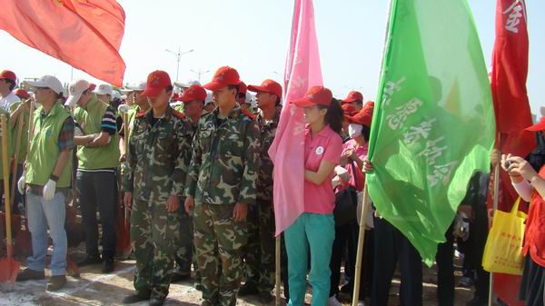 启动仪式后,身着统一服装,佩戴胸徽的巾帼志愿者们在防护林带内认真开展了清除垃圾和杂草活动。林带内带刺杂草很多,但志愿者们不顾枯草的扎手和灰尘的呛鼻,有的用锹铲,有的用手捡,每个人自带的塑料袋不一会就装满了垃圾和枯草,等全部清理完责任区域,志愿者面前堆起的垃圾和枯草像一座小山。看着干净清爽的林带,巾帼志愿者们都高兴的笑了。