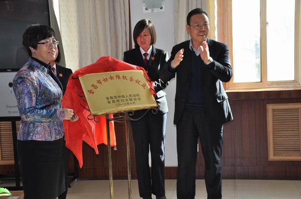 为进一步拓宽妇女维权渠道、构建社会化妇女维权多元协调机制、加大司法审判中对妇女权益的保障力度,11月5日,金昌市妇女维权合议庭揭牌暨全国维护妇女儿童权益先进集体和全国“巾帼文明岗”授牌仪式在市中级人民法院隆重举行。仪式由市中级人民法院院长申怀吉主持,市委常委、市纪委书记苏克俭和市政府副市长王旭应邀为妇女维权合议庭揭牌,市中级人民法院全体干部职工参加了仪式。
