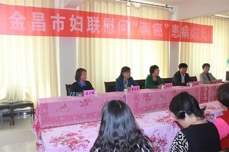 为深入开展爱心脱贫行动,把党和政府的关怀送到送到贫困妇女群众的心坎上,5月19日,金昌市妇联与永昌县妇联在县妇联五楼会议室,对18名“两癌”贫困患病妇女进行了慰问,为她们送上了爱心衣物和鞋子,县委副书记周益民同志参加了活动。潘主席鼓励她们正视困难,树立阳光心态,积极锻炼,战胜病魔,争取早日康复。