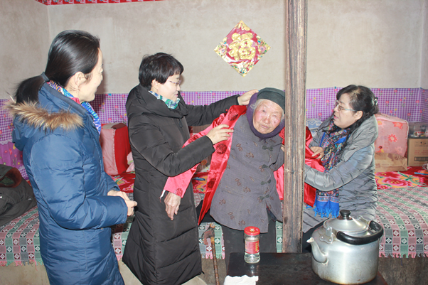 为进一步弘扬尊老敬老的优良传统,营造全社会敬老爱老助老的浓厚社会氛围,让城乡高龄老人、特困和空巢老人度过一个欢乐祥和的春节,1月13日,金昌市妇联主席赵华带队为永昌县90岁以上的5位高龄老人送去新春的慰问和祝福。