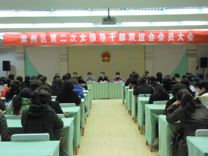 3月2日,肃州区第二届女领导干部联谊会换届大会在区政府二楼西会议室召开。区四大班子分管领导及市妇联副主席陈 菲出席会议。区直党政机关、事业单位、乡镇、社区的120名副科级以上女领导干部作为联谊会会员参加了大会。
