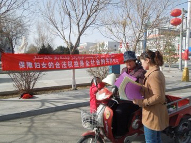 为进一步深化妇女法制宣传教育,提高广大妇女的法律素质,增强全社会维护妇女儿童合法权益、强化妇女维权服务,关注妇女民生,维护社会和谐稳定的公众意识。3月18日,县妇联协同县政法委、公安局、司法局、检察院、社保局等单位,在政府十字路口联合开展了社会治安综合治理宣传月咨询服务活动。活动通过设法律咨询点、发放宣传资料等形式,广泛开展了《妇女权益保障法》、《新婚姻法》、《未成年人保护法》及妇女小额担保贷款等法律法规及相关政策的宣传咨询服务活动。本次活动共发放宣传资料100余份,现场咨询30余人次,达到了预期宣传目的。