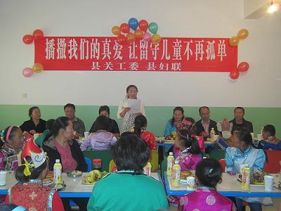 始布置活动场地,十几位留守儿童围在她们身边学包饺子,大家说着笑着,屋里充盈着浓浓的“家”的味道,孩子们吃着自己亲手包的饺子,露出了得意的笑脸。 联欢晚会上,县妇联负责人向留守儿童致以节日的问候,并与留守儿童合影留念。伴随着一首“感恩的心”,孩子们为自己远方的父母写下了节日的祝福,有一位同学这样写到:“亲爱的爸爸妈妈你们辛苦了,我爱你们,今天县妇联、关工委的阿姨们给我们过节日,我真的好开心好开心,今天开始我要好好努力学习回报老师和好心的叔叔阿姨们。”随后县妇联、县关工委工作人员和孩子们一