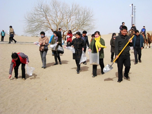 在第104个“三八”国际劳动妇女节期间,敦煌市妇联组织农牧局、住建局、水务局等系统的200多名巾帼志愿者开展了“生态环保行”活动。志愿者手拿铁锨、扫把、垃圾袋等清洁工具,走进月牙泉风景名胜区开展服务活动。志愿者们在景区内清扫垃圾,清理沙滩残留的骆驼粪便,捡拾沙滩上的烟头、废纸,为进一步美化、净化敦煌景区环境,贡献了自己的绵薄之力。