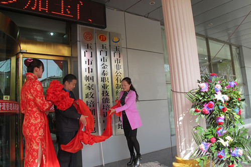 仪式上,柴新爱、安会民共同为“玉门市巾帼家政培训基地”揭牌。柴新爱要求,要充分发挥家庭服务业基地作用,深入开展家政技能培训,为城乡妇女提供创业就业实践平台,帮助妇女群众增加收入,提高生活幸福指数。人力资源和社会保障部门要全力支持配合市妇联等部门做好家政服务人员的技能培训工作,扶持我市巾帼家政培训基地健康发展。仪式结束后,与会人员参观了市巾帼家政培训基地。