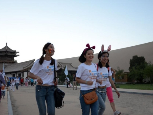 这是一个涵盖亲情、爱情和友情,将环保与公益,人文与情感巧妙融入其中的活动。Running Together,中文翻译叫“一起跑”,以“爱·家庭”为主题,以彩妆和cosplay为主要特色,跑步路程仅为3公里和5公里,倡导“轻运动,慢生活”的理念,将体育与娱乐、文化、旅游等多行业跨界结合。自首站5月25日在北京举办后,引发了家庭和团体迷你跑的热潮,如今更为古城敦煌掀起一股全民运动风。