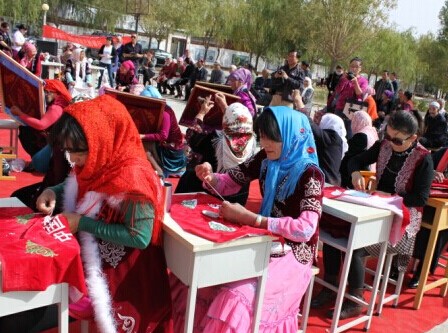 为大力弘扬哈萨克族民族文化,进一步推动阿克塞县少数民族技能型人才培训基地蓬勃发展,近日,阿克塞县妇联、县民族新村社区管委会联合举办了民族刺绣暨民族手工艺品成果展。 在活动现场,展出了一系列包含浓厚民族特色的手工艺品。这些作品外形精美,做工细致,充分融合了游牧部落民间创意的精华,反映了哈萨克族人生产生活情景和大自然风情。现场还开展了手绣、机绣、串珠、捻线、裁剪民族图案、编马鞭子、钉箱子等现场展示项目,引人驻足观看。