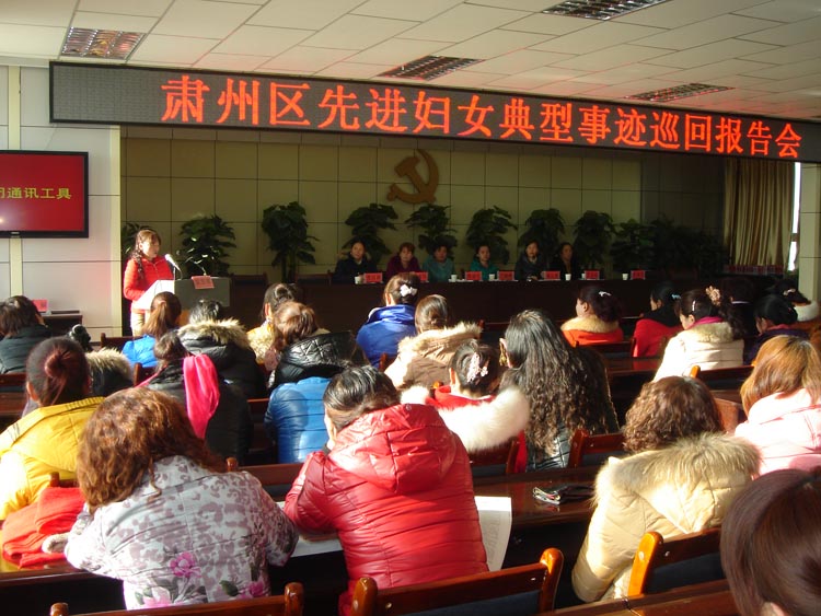 近期,肃州区妇联抓住冬季集中教育活动的有利时机,举办“先进妇女典型事迹”巡回报告活动,以“身边人讲身边事、身边事教育身边人”的方式,进一步发挥各类妇女先进典型在弘扬中华民族传统美德、树立良好家风、践行社会主义核心价值观方面的引领作用,激励更多妇女争做传统美德的传承者、社会主义核心价值观的实践者、和谐社会建设的推动者。 8名报告团成员都是群众身边的普通人,她们中有二十年如一日照顾瘫痪丈夫的“最美夫妻和美家庭”代表贾召英,有爱护子女、孝敬公婆的“孝老爱亲好媳妇”王玉玲,有热情善良、乐于奉献的优秀志愿者张清萍,还有勤学苦干带领妇女群众发家致富的农产品购销女能人王丽萍。她们用最朴实的语言讲述了自己的真实经历,用生活中的一点一滴诠释了坚强、善良、奉献和关爱,传递了真、善、美的正能量,深深打动了在场的每一位听众。许多妇女群众在感动之余都表示要向先进典型学习,从自身做起,为家庭幸福、社会和谐尽一份力。