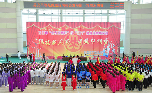3月6日,由玉门市妇联主办的庆三八“倡扬新风尚·同筑巾帼梦”健身操展示赛如期举办,来自全市城乡各行各业16支代表队、500多名参赛队员参加了比赛。