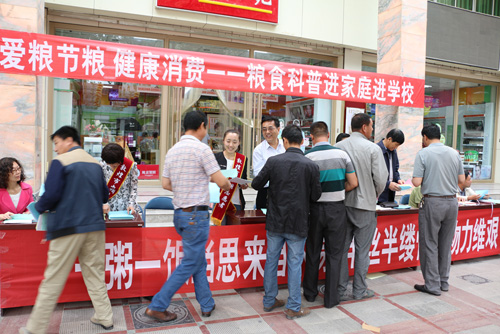 5月27日,敦煌市粮食局、市妇联等单位共同启动了以“爱粮节粮,健康消费”为主题的2015年粮食科技周宣传活动。