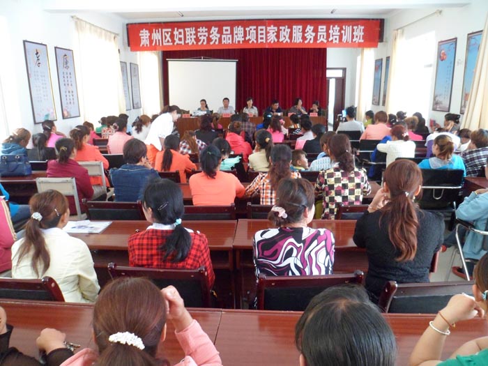 为了使广大农村妇女学到家政服务技术技能,进一步提高广大农村妇女的就业创业能力,拓宽增收致富渠道,近日,肃州区妇联2015年劳务品牌家政服务员培训班,在肃州区丰乐乡开班,来自全乡的100名妇女参加了培训班。区妇联、泉湖乡政府分管领导、酒泉市聚馨职业技能培训中心负责人参加了开班仪式。