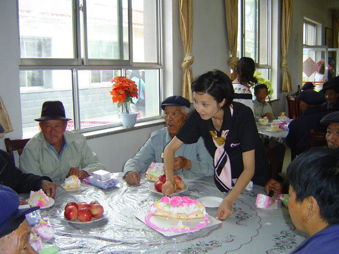 活动中,由肃州区妇联负责同志简要介绍了本次关爱慰问活动的内容,代表妇联组织向老人表达了亲切的问候和衷心的祝福。巾帼志愿者为全院100多名孤寡残疾老人准备了新鲜水果、生日蛋糕和小礼品,并为每位老人赠送了毛巾、香皂等日常生活用品。在欢快的音乐声中,志愿者们依次表演了精心准备的舞蹈、表演唱、器乐独奏等节目。文艺表演结束后,玫林凯公司酒泉工作室还为敬老院赠送了由酒泉书法家协会书法家书写的“福如东海常流水、寿比南山不老松”对联和书画作品,向全体老人表达了关爱和祝福。