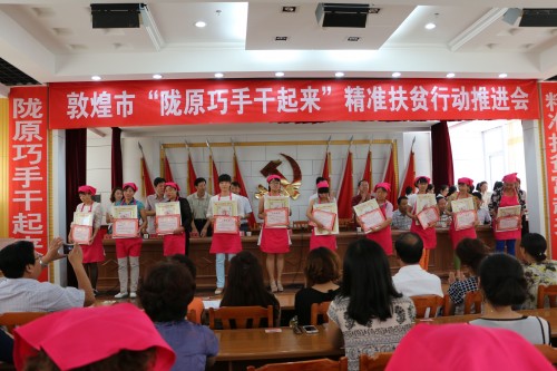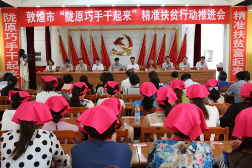 为深入贯彻落实市委、市政府精准扶贫精准脱贫工作会议精神,扎实推进妇女手工编织工作,8月21日,敦煌市妇联召开了“陇原巧手干起来”精准扶贫行动推进会,市委常委、市政府副市长吴光林,市委常委、宣传部部长贺建生,西北师大敦煌学院院长田卫戈,市委组织部、农办、人社局、旅游局、商务局、文联等部门领导和各乡镇妇女工作分管领导、妇联主席、各村妇代会主任,城市各妇委会主任参加了会议。