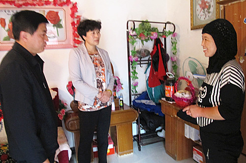 古尔邦节来临之际,为让各族穆斯林妇女度过一个欢乐、祥和的节日,切实把党委、政府的关怀以及妇联组织的温暖送到各族穆斯林妇女心里,玉门市妇联主席闫辉陪同市委常委、组织部部长、统战部部长周福德深入走访慰问了穆斯林贫困妇女,送去了节日的问候及慰问品。