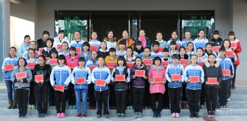 12月18日,敦煌中学的阶梯教室里暖意融融,敦煌市妇联为50名家庭贫困的高中女生每人发放了“蓝天春蕾”助学金1200元。