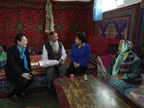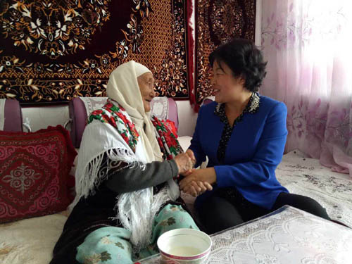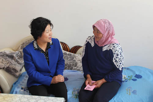 在走访慰问中,王红霞耐心聆听了94岁高龄母亲比哈依卡现在的身体状况,鼓励老人要开心健康地生活,为她围上了母亲节的礼物——头巾。在全国最美家庭侯选家庭哈布德开家中,王红霞与哈布德开、乔娃两位老人聊家常,为乔娃老人送上了节日的鲜花和礼品,号召大家要向模范家庭看齐,大力弘扬家庭美德。在与“两癌”贫困母亲沙英花交谈时,王红霞详细了解了沙英花的病情和治疗情况,安慰她要放下思想包袱,勇于面对病魔,坚持治疗,争取早恢复健康。