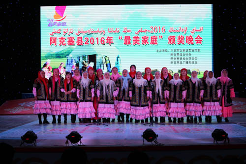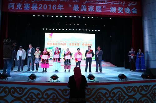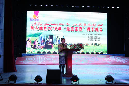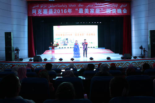 2016年5月12日晚上,中共阿克塞县委宣传部、县文明办、县妇联、县电视台共同举办了2016年“最美家庭”颁奖晚会,县委常委、宣传部部长雪莲,县人大副主任贾尔恒、卡格巴,县政府副县长魏生科,县政协副主席马向文、雷兴云,县法院院长王海龙出席颁奖晚会。县委常委、宣传部部长雪莲致辞,县人大副主任贾尔恒宣读表彰决定,并进行颁奖仪式。之后,县民族歌舞团妇委会、幼儿园妇委会、小学妇委会、中学妇委会、阿帕合唱团、东梅广场舞队将献上精彩的文艺节目,为2016年“最美家庭”颁奖晚会献礼。