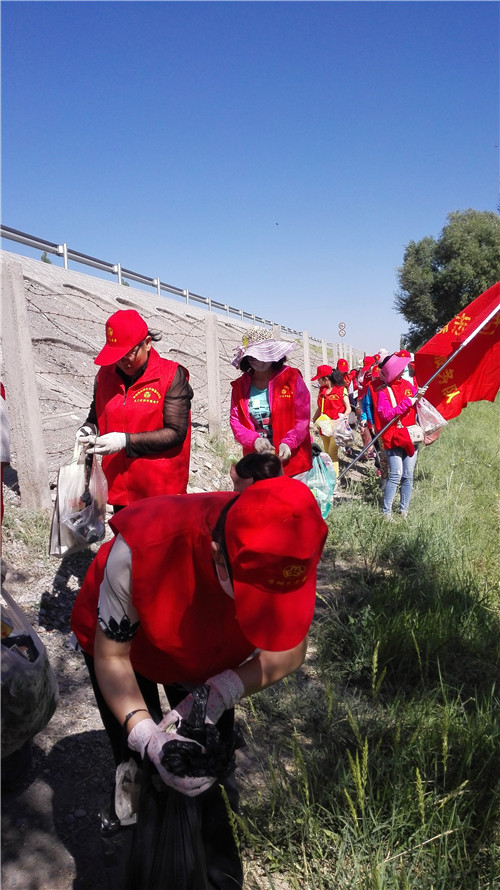 为喜迎丝绸之路敦煌文博会,营造文明和谐的社会环境,进一步引导组织广大妇女参与全市环境卫生集中整治行动,6月16日上午,玉门市妇联组织全市的巾帼志愿者在玉门境内连霍高速沿线开展环境卫生清理活动。她们发扬不怕脏、不怕累的精神,集中力量主要清除了交通要道沿路、沿线、居民点、商业门点旁的杂草、垃圾,铲除了电线杆上乱贴的小广告。整个过程中志愿者们热情高涨,个个干得热火朝天。