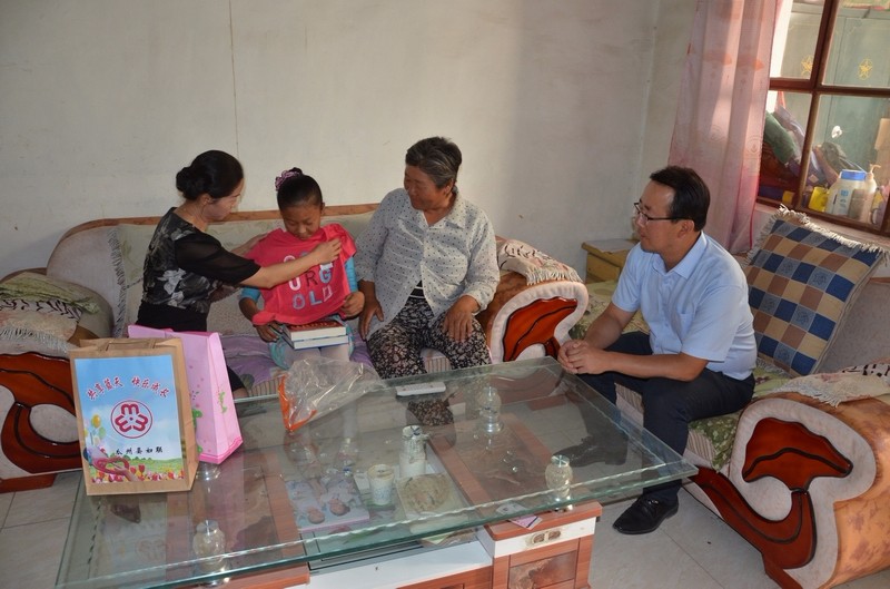 活动最后,县委副书记王金生、人大副主任王晓英、政府副县长曹广成、政协副主席杨萍一行来到柴玉乾、马梦茹等留守儿童家中,详细了解了其家庭状况和学习情况,为她们送去了学习用品、书籍、衣服,并鼓励其好好学习,将来做一名对社会有用的人。