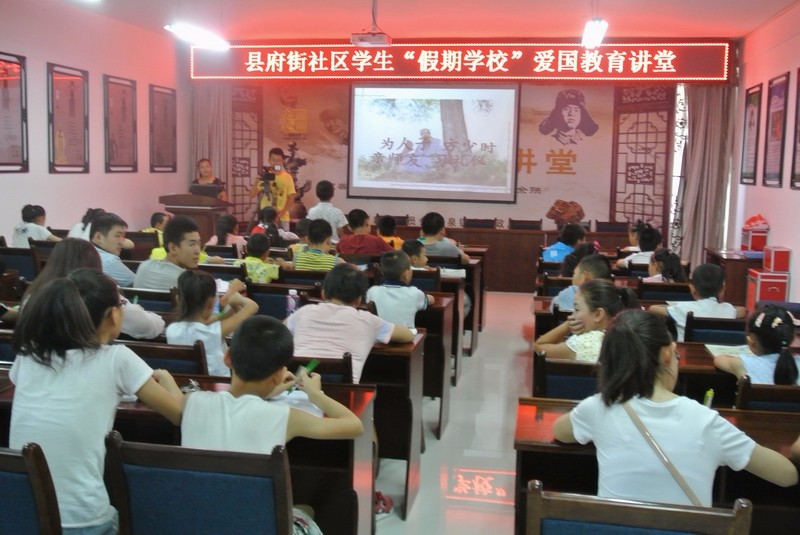 县府街社区以“回忆革命路,争做爱国娃”为主题,按照“唱歌曲、看短片、诵经典、谈感悟、做互动”五个环节,为社区留守儿童、贫困儿童上了一堂生动的“暑期生活”爱国主义道德讲堂活动,一首红色歌曲《红星闪闪》拉开了序幕,小短片《碧血黄沙》让学生们重温了革命战争年代英雄们抛头颅,洒热血的情景。