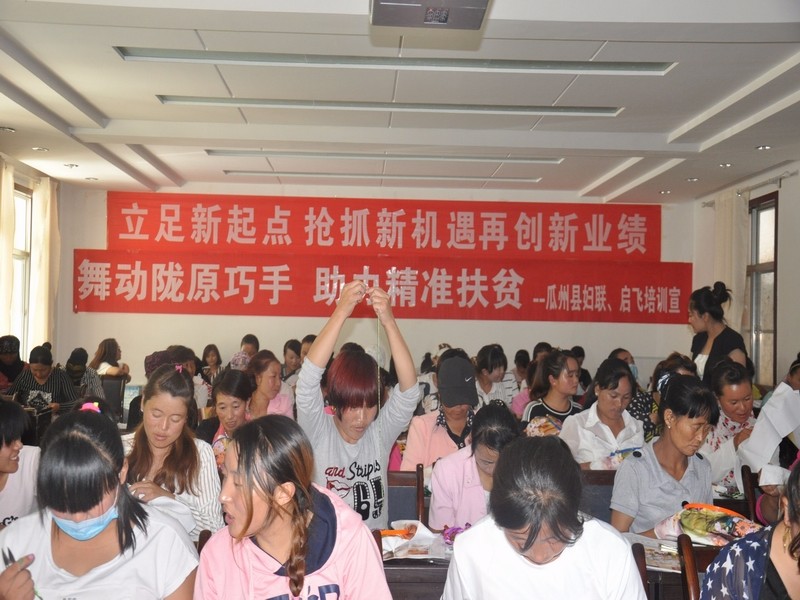 近日,由瓜州县妇联、县扶贫办主办,瓜州启飞职业技能培训中心承办的精准扶贫陇原巧手培训班在沙河乡举办,吸引了近百名巧手学习手工编织。