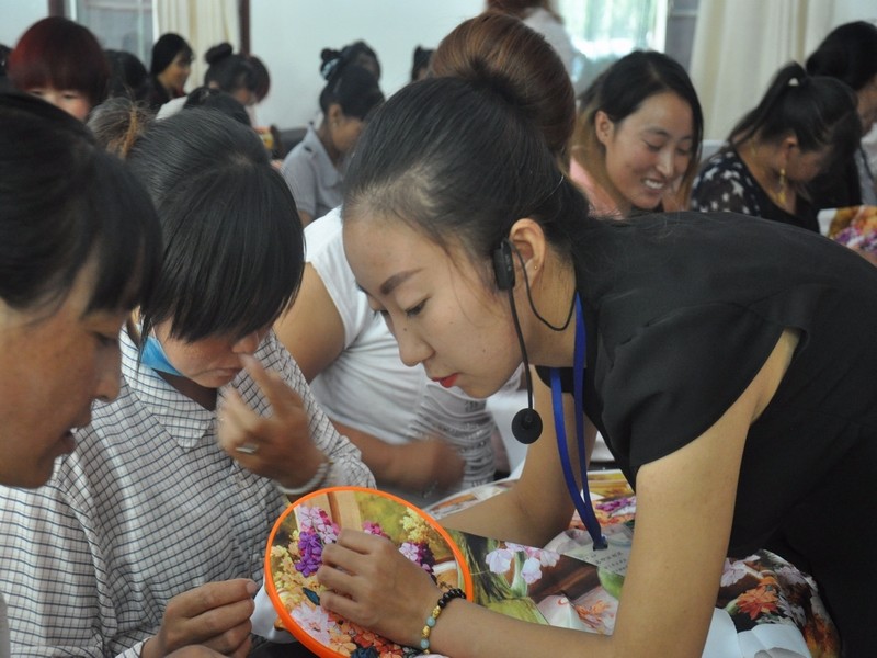 此次培训班主要培训丝带绣的编织,培训采取理论讲解和现场实践相结合的方式,按照宜绣则绣,宜剪则剪,宜编则编的原则,因地因时因人开展培训,培训取得了良好的效果。