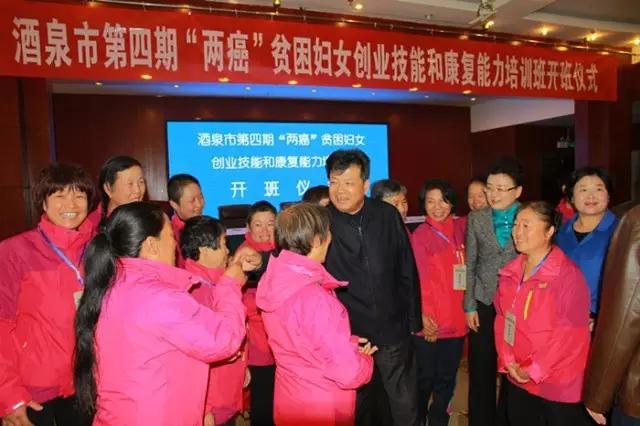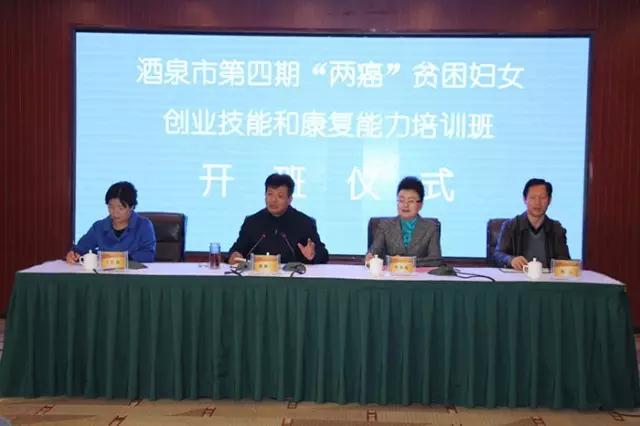 市委常委、组织部部长燕胜三出席开班仪式并讲话,市妇联主席李金花主持开班仪式,市委组织部副部长、考核办主任王红霞、市卫计委副主任熊云、市妇联副主席杨凤琴、市政府妇儿工委办主任肖鹂、市医院肿瘤科主任马永录、市二院中医科副主任医师张晓红参加开班仪式,来自肃州区、金塔县、肃北县、阿克塞县的50名“两癌”贫困妇女将参加为期10天的培训。