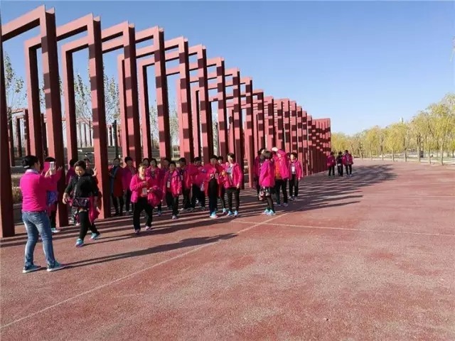 风和日丽、阳光明媚,酒泉市第四期“两癌”贫困妇女创业技能和康复能力培训班的学员们,放开胸怀,拥抱自然。