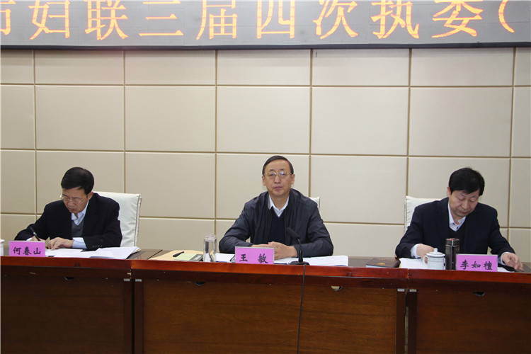市委常委王敏作重要讲话,对去年全市妇女工作取得的成绩给予了充分肯定,对今后创新开展妇女工作提出具体要求:一要认真贯彻落实中央、省、市委决策部署,牢牢把握妇联工作的正确方向;二要始终围绕中心、服务大局,动员广大妇女为全面建成小康社会建功立业;三要有序推动妇联基层组织改革措施真正落地,切实做出让广大妇女群众满意的工作实效。