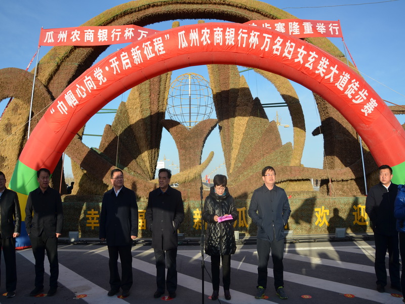 县委书记宋诚,县委副书记、政府县长王晋婷,县委副书记王金生以及全体在家常委和分管妇联工作的县领导出席了徒步赛启动仪式。仪式由县委常委、宣传部部长鲁玉梅主持,县委副书记、政府县长王晋婷在启动仪式上作了重要讲话,她指出举办这次活动既是让全县妇女同胞们更深切的感受全县经济社会发展成果,也是全面落实五大发展理念的重要举措,希望妇女同胞们以更加良好的精神状态和更加高昂的斗志融入到全县经济社会建设的热潮中,为推动“三翻番三突破三提升”进程,建设生态文明幸福新瓜州做出新的更大贡献!