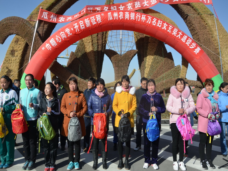 为隆重纪念第107个国际劳动妇女节,3月8日上午,瓜州县妇联举办了“巾帼心向党·开启新征程”瓜州农商银行杯万名妇女玄奘大道徒步赛。