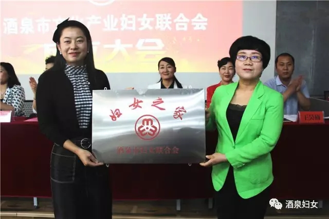 酒泉市妇联副主席杨凤琴为酒泉文化产业妇联“妇女之家”授牌。