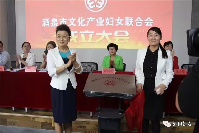 酒泉市妇联主席李金花、肃州区政府副区长郭秀荣为酒泉文化产业妇联揭牌。