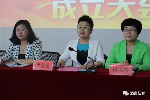 市妇联党组书记、主席李金花在成立大会上讲话