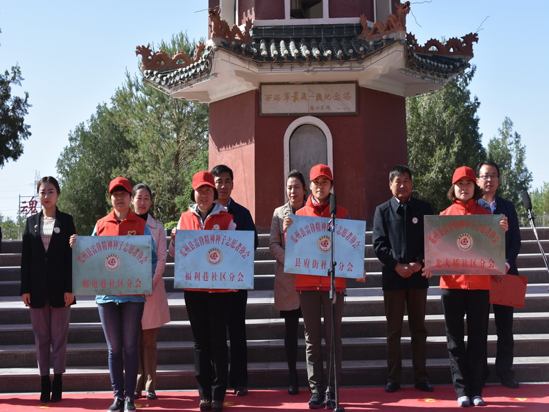 启动仪式上,宣读了《准予成立“瓜州县雷锋精神种子志愿者协会”的批复》;为“瓜州县雷锋精神种子志愿者协会”和邮电巷、福利巷、县府街、北大桥4个雷锋精神种子志愿者协会分会授牌。