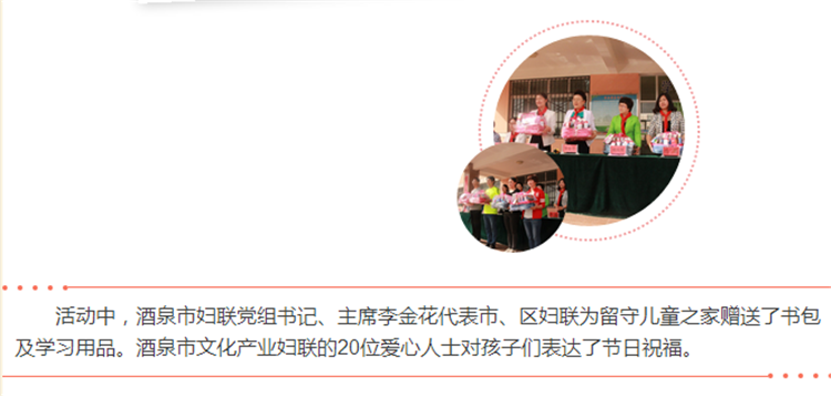 李主席指出:关心和帮助儿童成长,是市委、市政府交给妇联的一项重要任务。全市各级妇联组织要不负重托,用真情关爱儿童,用行动服务儿童,使儿童身心得到健康发展,妇联作用得到更大发挥。希望社会各界爱心人士要有高度的社会责任感和使命感,为孩子们多做实事、好事。