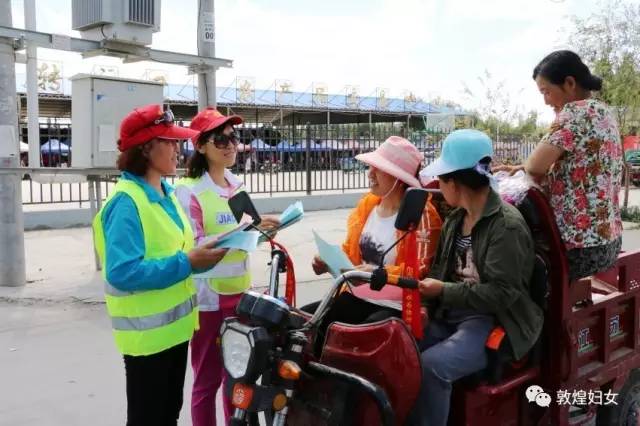 为进一步推进平安家庭、平安敦煌建设,切实提高广大妇女和家庭成员的文明素质,充分发挥妇女作为妻子、母亲、女儿的特殊作用,广大妇女坚决响应号召,摒弃交通陋习,做好自己和家人的生命安全“守护者”,成为文明交通的实践者、参与者、支持者,全市市、镇、村、组四级妇联干部齐出动,深入集市、瓜果交易市场等人流密集区域开展道路交通安全宣传教育、进行文明交通劝导。