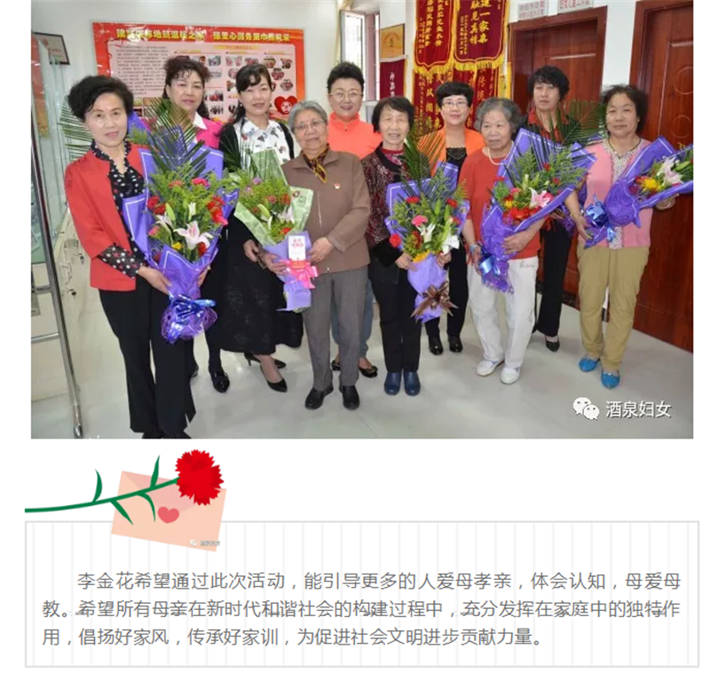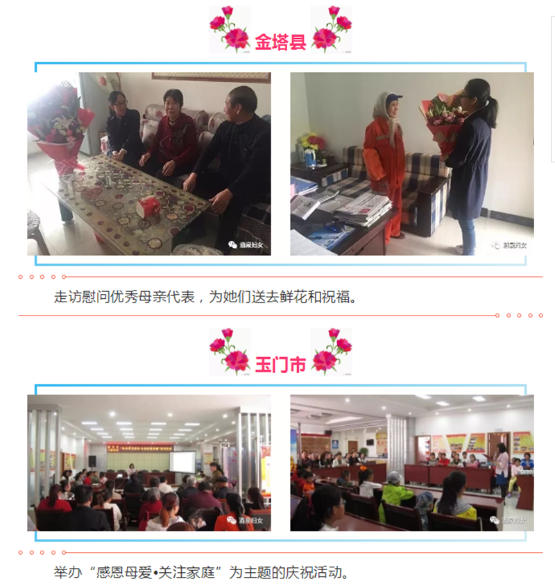为弘扬中华民族孝敬母亲、感恩母爱的传统美德,传递社会正能量,母亲节期间,酒泉市各级妇联组织精心策划,开展了内容丰富的系列活动献礼“母亲节”。