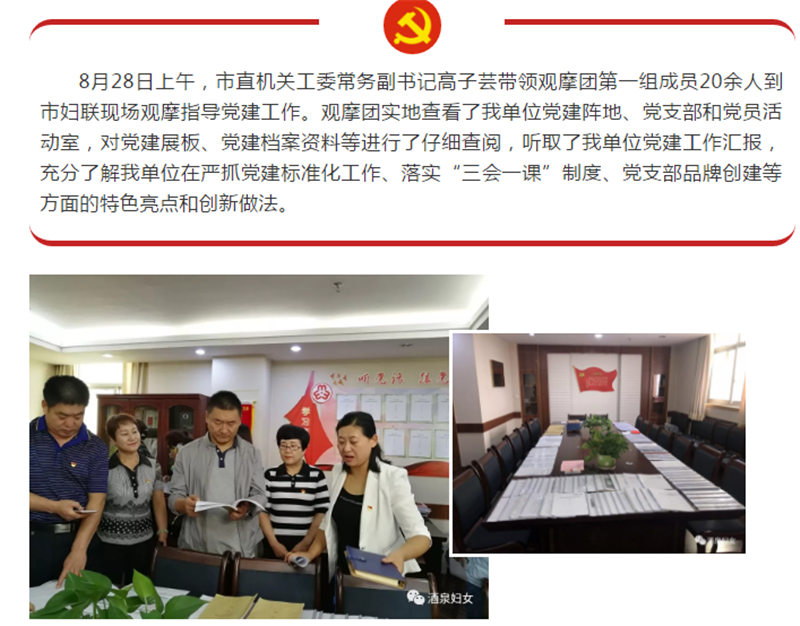 推进党建标准化建设 推动党建高质量发展 ——市直机关党建观摩团在市妇联观摩指导党建工作