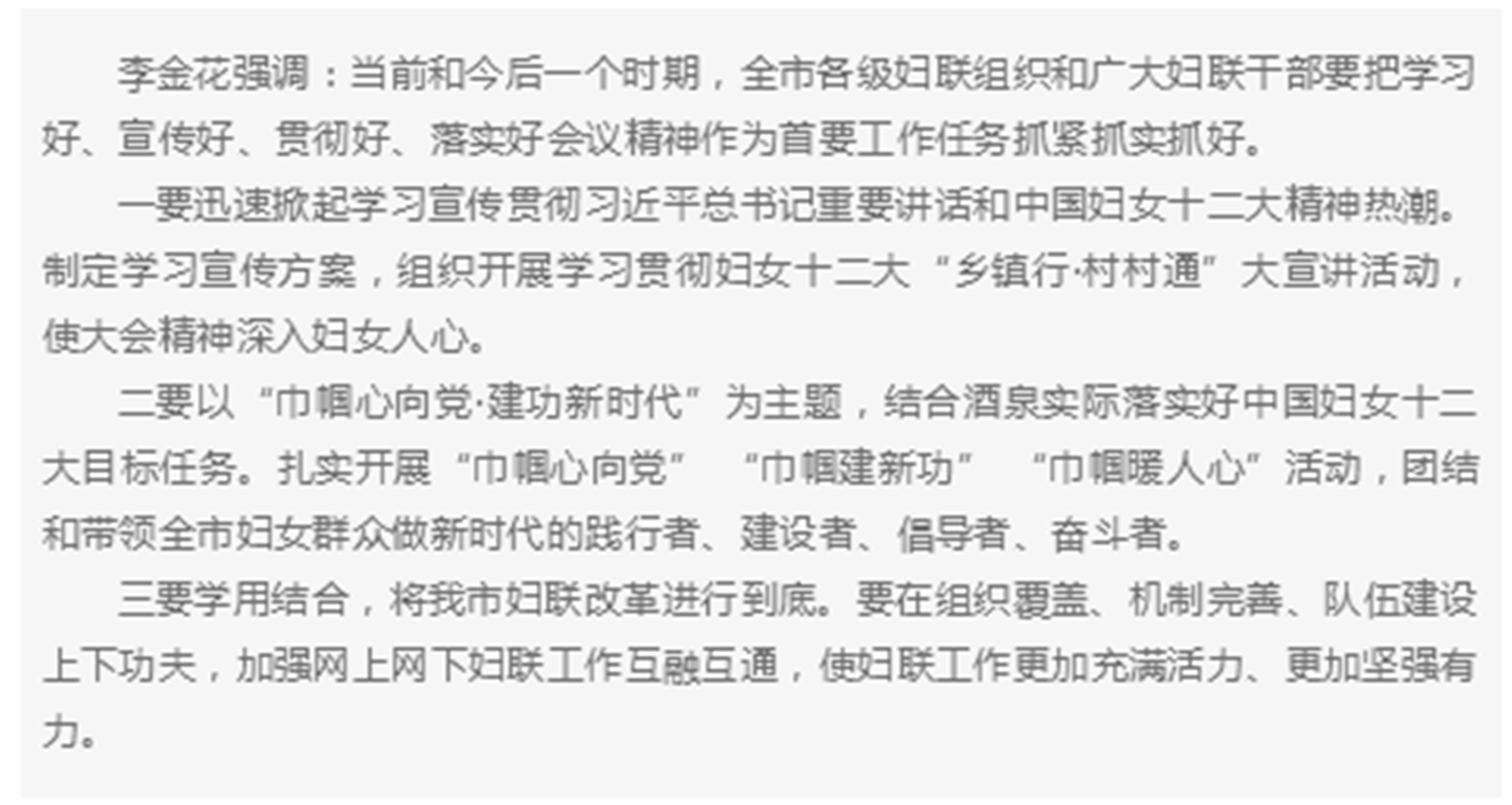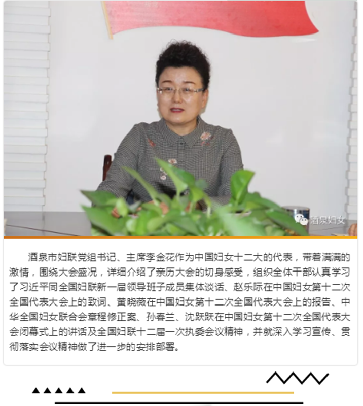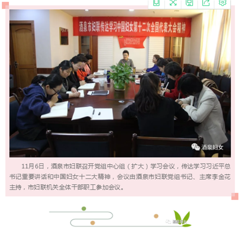 酒泉市妇联组织传达学习习近平总书记重要讲话和中国妇女第十二次全国代表大会精神